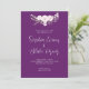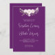 Apresentando nosso maravilhoso e elegante convite para o casamento, perfeito para casais que querem adicionar um pop de cor a sua papelaria de casamento enquanto mantêm as coisas simples e sofisticadas. Este convite apresenta uma bela sombra de roxo com um buquê lindo de flores rosa pálidas e verde-claro no topo, criando uma bela e romântica design. O texto do convite é impresso numa cor de creme suave, acrescentando um toque de calor e simplicidade à aparência geral. O recurso de destaque deste convite é a fonte de script elaborada branca usada para os nomes dos casais, adicionando um toque de refinamento e graça ao design. Este convite é perfeito para casais que querem fazer uma declaração com uma escolha de cor única, mantendo, ao mesmo tempo, um aspecto elegante e clássico. É versátil o suficiente para trabalhar com uma variedade de temas e estilos de casamento, do tradicional ao contemporâneo. Além disso, o material de alta qualidade e a impressão garantem que seus convidados ficarão impressionados a partir do momento em que receberem o convite pelo correio. No geral, nosso simples convite de casamento em roxo é uma escolha bonita e memorável que dará o tom para uma celebração romântica e sofisticada de casamento.