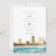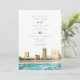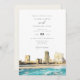 Este convite para o casamento apresenta uma pintura aquosa da Atlantic City, no horizonte de Nova Jersey. Edite com facilidade o texto *maioria* para atender às suas necessidades de eventos. Mude a cor de fundo e adicione sua própria foto ao fundo, junto com o site do seu casamento, para um toque pessoal.