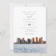 Este convite de casamento apresenta uma pintura aquosa de Long Island New York Waterline Skyline. Edite com facilidade o texto *maioria* para atender às suas necessidades de eventos. Altere a cor de fundo e adicione a sua própria fotografia à parte de trás, se preferir.