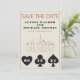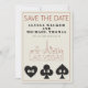 Um casamento divertido e moderno Salve a data para excitar seus convidados para seu casamento em Las Vegas! Esta opção Save the Date apresenta gráficos gráficos gráficos pretos de jogo em negrito, uma renderização moderna do horizonte de Las Vegas e texto e fonte totalmente personalizáveis sobre fundo de marfim creme. No verso, você pode editar para seu próprio site de casamento ou mais informações. Perfeito para um evento tradicional moderno ou clássico - este elegante cartão Salvar a data é versátil!