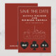 Um casamento divertido e moderno Salve a data para excitar seus convidados para seu casamento em Las Vegas! Esta opção Save the Date apresenta gráficos gráficos pretos de cartas de jogar em negrito, uma renderização moderna do horizonte de Las Vegas e texto e fonte totalmente personalizáveis em fundo vermelho de casino. No verso, você pode editar para seu próprio site de casamento ou mais informações. Perfeito para um evento tradicional moderno ou clássico - este elegante cartão Salvar a data é versátil!