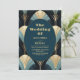 Convites Casamento sofisticado de Deco Azul e Dourado