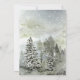 Lindos sempre-verdes cobertos de neve e floresta com céu de inverno em tons suaves de aquarela, convites de casamento somente para recepção.