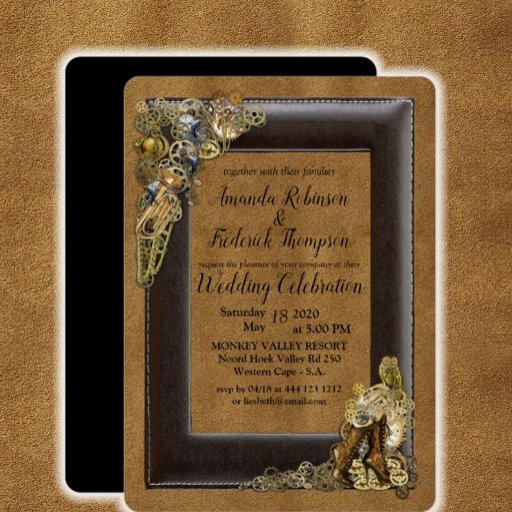 Gótico - Casamento Steampunk Dourado & Brass na textura de Suede com um convite de tema de casamento de quadro de couro escuro definido para personalizar