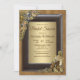 Gótico - Casamento Steampunk Dourado & Brass na textura de Suede com um convite de tema de casamento de quadro de couro escuro definido para personalizar
