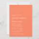 Este convite de casamento colorido apresenta uma composição minimalista e tipografia simples em um fundo tangerina elétrico brilhante. Por favor, envie-me uma mensagem com qualquer dúvida ou solicitação.
