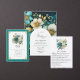 Convites Casamento Teal e Dourado Floral