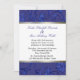 Na moda convite para casamento, feito em uma design de Fleur azul escuro, em cima e em baixo, revestido com uma elegante linha de prata. Uma área de texto branco no meio tem texto de script azul para os nomes e fonte regular preta para o corpo do convite. O texto é completamente personalizável para mudar e mover-se ao redor do que você preferir. Altere o estilo e a cor do texto se você escolher. Cheio de produtos de casamento correspondentes disponíveis.