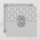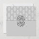 Um anúncio de casamento muito elegante em cinzas e prata, com cinza e cor damasco branca, ornamentos prateados.