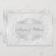 Convites de casamento feitos sob encomenda. Prata elegante e glamoroso e convites brancos do casamento tema damasco. O dobro contemporâneo bonito, elegante, chique, moderno tomou partido convida com uma placa conhecida do trabalho ornamentado elegante, à moda do rolo em um fundo bonito da cor damasco. Todo o texto é inteiramente personalizable/personalisable encontrar suas necessidades e você pode mudar o estilo, a cor e o tamanho de pia batismal da pia batismal se você deseja. Eu tenho produtos de harmonização do casamento em minha loja. Artwork©delightful-doodles.com original. Se você precisa algum auxílio que personaliza seu produto me contacta por favor através de minha loja e eu estarei feliz ajudar. NOTE POR FAVOR: Tudo convida em Zazzle tem imagens impressas do plano.