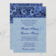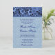 Esta design com suas margaridas azuis reais saindo atrás de um fundo de damasco azul faz um convite de casamento elegante. Você pode experimentar com diferentes tipos de papel para obter apenas a aparência que quiser. Eu recomendo o papel metálico de gelo privilegiado que dará ao seu convite um shimmer especial e brilhar.