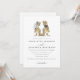 Torne o seu casamento inesquecível com este convite de casamento de dinossauro único, apresentando uma ilustração divertida de noivos T-Rex. Projetado para casais que adoram adicionar um pouco de diversão ao seu grande dia, este convite de casamento caprichoso combina tipografia minimalista moderna com ilustrações encantadoras de dinossauros em tons suaves de marrom, bege e creme.