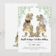 Deleite seus convidados com este divertido convite de casamento temático de dinossauros com noiva e noivo dinossauros engraçados e folhagem de eucalipto em aquarela. Fácil de personalizar com os nomes da noiva e do noivo, a data do casamento e todos os detalhes do local do casamento em tipografia moderna. Ilustrações divertidas do casal de dinossauros T-Rex em tons marrons com folhagem botânica em aquarela em tons verdes. Arte original e única de dinossauros da artista Catherine Sweetman