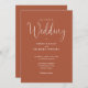 Este convite de casamento de guião elegante do terracotta pode ser personalizado com todas as suas informações especiais sobre o dia do casamento. Projetado por Thisnotme©