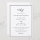 Este convite formal para o casamento é acentuado pelo preto nítido no motif design de monograma branco da noiva e das iniciais do noivo na caligrafia com uma dupla borda no papel texturizado de naves. O texto formal do convite tradicional que foi cuidadosamente organizado e dimensionado é usado no convite personalizável, mas pode ser personalizado para atender às suas necessidades de dia de casamento. Uma escolha perfeita para temas de casamentos formais e clássicos com suas características minimalistas simples e bela tipografia tradicional.
