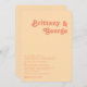 Este convite de casamento tradicional de canto laranja arredondado é perfeito para o seu simples casamento de vintage, colorido de boho tropical no verão. Sua única fonte boêmica do século do médio dá a essa design uma víbora hippie minimalista clássica. Se você está procurando por uma design que apresente cores brilhantes e ousadas para o seu casamento criativo na praia dos 70, então esse produto, e sua coleção de casamento coordenada, é exatamente o que você está procurando. Sinta-se livre para mudar a cor adicionar seu próprio trabalho de arte, gráficos ou fotos. Se tiver alguma dúvida sobre a design deste produto, por favor sinta-se à vontade para nos contactar!