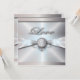 convites de casamento tradicionais elegantes pérola branca e lembranças de casamento prateadas.