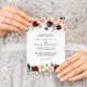 Este convite de casamento tradicional de primavera floral roxo e arrogante é perfeito para um casamento simples. O design pintado à mão apresenta folhas verdes, cor-de-rosa deslumbrante, pincelada, púrpura, vermelha, branca e lenhosa, pessoas bem organizadas em pequenos buquês fofos.