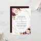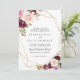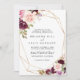Este convite de casamento tradicional floral, geométrico de ouro rústico é perfeito para um casamento moderno. A design apresenta flores e folhagem lindas e coloridas desenhadas à mão, elegantemente organizadas em buquês atraentes, enfeitando uma armação geométrica dourada.
