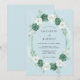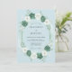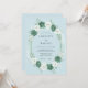 Este design apresenta uma paleta suave de aquarela de azul pó, branco crocante e verde espuma do mar profundo. Um arranjo exuberante de rosas delicadas e raminhos de eucalipto cria uma estética romântica e serena. Perfeito para um evento clássico de primavera ou verão, os florais pintados oferecem um sentimento atemporal e arejado.
