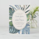 Convide seus convidados para o paraíso por um dia com esta elegante design de palmeiras tropicais. Apresentando um spray de folhas tropicais sorteadas em azuis serenos e verdes e um padrão de ratos estilizados nas costas, essa design incorpora um dia de brisa debaixo das palmeiras. Perfeito para seu caso casual de praia ou celebração de destino nos trópicos. Compre a coleção hoje para o papel de carta correspondente, e vá para o dia perfeito!