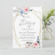 Convite de casamento Floral de Cores d'Água. Elegante convite para o casamento floral com lindas flores pintadas à mão e verde-aquoso em azul-claro, cor-de-rosa-pincel e folhas de palma com elegante roteiro de caligrafia e moldura de folha de ouro digital. Perfeito para o casamento da praia tropical. Você pode personalizar o texto, o estilo da fonte, a cor e o tamanho em frente e atrás do cartão. Por favor, sinta-se à vontade para contactar-me para obter os itens correspondentes.