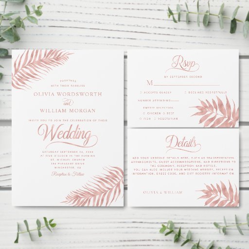 Elegant Rose Gold Tropical Palm Leaf Wedding SuiteCriado por Connie R.