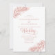 Simples e elegante, este clássico convite de rosa e casamento branco é perfeito para casamentos de praia de destino, ou um tema tropical. Palma deixa enquadrar o texto importante, com elegante caligrafia de script, e um fundo branco limpo. Na parte de trás está uma folha de palma dourada rosa. *Se você quiser itens adicionais com este design ou outra personalização de design, entre em contato comigo através do Zazzle.