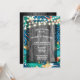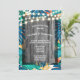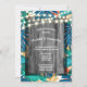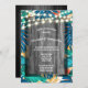 Um design bonito dos meios mistos das belas artes e a fotografia que compreende de luzes de incandescência brilhantes da corda do falso ajustam-se contra um contexto da madeira rústica e a planta alaranjada, amarela, verde e azul vibrante da selva sae. A parte traseira pode ser personalizada para incorporar toda a informações adicionais para convidados.