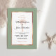 Convide seus hóspedes para ajudá-lo a celebrar seu dia especial com este convite elegante que inclui a escrita moderna, o cobre rosa de ouro e o texto preto, incluindo uma palmeira artística e um quadro metálico de cobre rosa de ouro na frente. Perfeito para uma praia ou casamento ao ar livre. Um fundo verde sábio está na frente e atrás do cartão. Se precisar de ajuda ou de um pedido personalizado, por favor, entre em contato comigo.