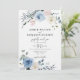 Convite de casamento Floral de Cores d'Água. Elegante convite para o casamento floral com lindas flores pintadas à mão e verde-aquoso em azul claro, cor-de-rosa-pincel e folhas de palma com elegante roteiro caligráfico. Você pode personalizar o texto, o estilo da fonte, a cor e o tamanho em frente e atrás do cartão. Por favor, sinta-se à vontade para contactar-me para obter os itens correspondentes.