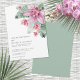 Convite de Casamento Floral Tropical com Folhas de Palmeira Modernas. Com acentos botânicos rosa e verde contrastados com letras pretas e brancas. Um design tropical que abraça a beleza tranquila da natureza misturada com uma pitada de diversão que certamente ajudará você a se divertir. Folhas de bananeira ou palmeira tropicais verdes calmantes, ao lado de flores de orquídea roxo-rosa suaves. Fontes serifadas aprimoradas por uma fonte tipográfica manuscrita moderna ou script, essa impressão encantadora irradia charme e sofisticação. Esse design versátil traz um senso de paraíso tropical para qualquer ambiente ou ocasião especial, tornando-o perfeito para um casamento de destino ou apenas quando você deseja adicionar um toque tropical.
