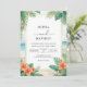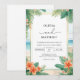 Anuncie sua união com este design vibrante com frentes de palma esmagadas e florescentes tropicais brilhantes. Uma visão cênica do oceano evoca uma atmosfera relaxada e costeira, perfeita para uma celebração de destino.