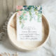 Este convite ilustrado de casamento artístico floral tropical é perfeito para um casamento de destino. Os design ilustram flores brancas, amarelas, cor-de-rosa, pinceladas com lindas folhas verdes de cor aquosa, inspiradoras elegância.