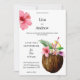 Coloque seus convidados no humor para festejar com este convite de casamento tropical Hawaiian floral & Coconut. Flores de Hibiscus.