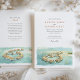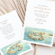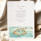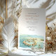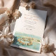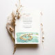 Convide seus hóspedes para uma celebração de Caribe de sonho com este convite de casamento de cor d'água que respira, apresentando os icônicos bungalows d'água de Sandals Montego Bay, Jamaica. A trabalho de arte representa, de forma elegante, os charmosos bangalôs de telhado dispostos numa única formação em forma de coração ou circular sobre a turquesa cristalina e as águas aquáticas do mar Caribe. Criada em um estilo aquoso suave e sonhador, a cena captura a beleza serena desse paraíso tropical, com ralas arenosas, uma folhagem verde distante e luxuosa, e um céu suave. Este convite é perfeito para um luxuoso casamento de destino, uma cerimônia romântica de praia, ou qualquer casal sonhando com uma fuga da ilha. A frente apresenta elegantemente seus detalhes de casamento, enquanto o lado inverso oferece "Os Detalhes Mais Finos" para informações de convidado, continuando o trabalho de arte da ilha idílica. A paleta colorida é uma mistura tranquila de turquesa, aqua, azul-cerulano, bege-arenoso, castanho-claro para os telhados amassados, brancos cremosos para os bangalôs, e vários tons de verde-luxuoso.