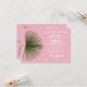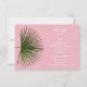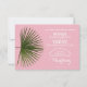 Design de casamento com uma folha de palma tropical. Uma palmeira verde sobre um fundo rosa. Um design excelente para um casamento de verão moderno. Se você quiser ajuda para personalizar este design, por favor, sinta-se à vontade para entrar em contato comigo, há um botão de perguntar a este designer logo abaixo deste texto.