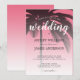 Convite de casamento de destino chic com uma palmeira tropical design num fundo cor-de-rosa com uma escrita elegante e uma tipografia moderna. O rosa brilhante desaparece sobre um fundo branco. Basta adicionar seus detalhes de casamento a este convite de casamento de praia na moda tropical. Desenvolvido exclusivamente para você pelo Happy Dolphin studio.