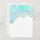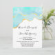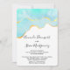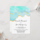 Convite de casamento com um design vibrante de verão. Imagem em aquarela turquesa / verde aqua com uma borda dourada ondulada. Elegante e adorável.