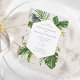 Este convite para o casamento apresenta palma tropical de aquarela verde, folhas de banana e monstera e folhagem de ouro simulada. Ele tem um padrão correspondente de volta. Trendy geométrico com hexágonos, círculos e diamantes com bordas simuladas de sotaque dourado. Esta coleção tem convites para casamento, salve as datas, os vps, os menus e as etiquetas. Excelente para o verão, destino e casamentos de praia!