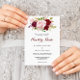 Este convite de casamento vermelho tropical e romântico espanhol é perfeito para um casamento de destino. O design de marsala artístico bordo apresenta rosas de aquarela, verdes, cor-de-rosa, burgundy e blush, combinados com verde, bem arrumados num buquê de flores gracioso e radiante.