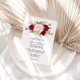 Este convite de casamento romântico e tropical vermelho é perfeito para um casamento rústico. O design de marsala artístico bordo apresenta rosas de aquarela, verdes, cor-de-rosa, burgundy e blush, combinados com verde, bem arrumados num buquê de flores gracioso e radiante.