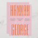 Personalize este convite de casamento, moderno e colorido, mas simples e único, cor-de-rosa e cor-de-laranja, com uma tipografia de nome grande e corajosa no lado frontal com detalhes da escrita de marfim e detalhes minimalistas da redação na frente, e o seu website de casamento e o seu código QR no lado de trás para os seus hóspedes, para que o RSVP seja digitalmente elevado. Adicione facilmente seus detalhes de casamento para torná-lo seu próprio! A opção de download de arquivos digitais instantâneos também está disponível - perfeita para compartilhamento de eventos ou impressão em casa. Role acima para localizar a coleção de artigos de papelaria correspondente. Solicitações personalizadas de design, adições de produtos à coleção e perguntas de modelo são sempre bem-vindas - clique no botão "mensagem" ou e-mail direto: contact@figandlilyco.com. Design é carinhosamente criado por Fig e Lily Studios: Enviando bênçãos e obrigados por estarem aqui conosco!