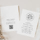 Este monograma de convite único de casamento de código QR preto e branco da coleção Meghan é perfeito para um casamento personalizado. Dê ao seu casamento uma aparência de marca premium carregando seu monograma ou crista de casamento personalizado para as modelos fáceis de usar na Coleção MEGHAN de Paperie Fresca e Iummy. Altere facilmente as cores e as fontes para se coordenar com o seu monograma na design. Se precisar de modelos de coordenação adicionais, por favor, chame a atenção! Salve o papel, incluindo um código QR para seu convidado para ver detalhes, RSVP ou ambos.