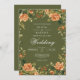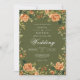 Um pano de fundo rico e de oliveira enquadra uma cascata de flores vibrantes e parelhentas de peônias e de folhagem delicada. Esta design evoca um sentido de elegância rústica e beleza natural.