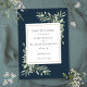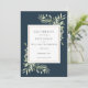 Com folhas de cor aquática botânica verde, este na moda Salve a data pode ser personalizado com seus detalhes especiais Salve a data, com um fundo azul-marinho profundo no verso. Projetado por Thisnotme©
