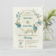Convites casamento verde com flores brancas azuis