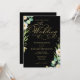 Convite para Casamento Greenery de Folha de Ouro Preta Elegante