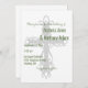 Um belo e elegante convite para o casamento religioso com a tipografia verde caçadora uma bela cruz transparente como fundo. A tipografia minimalista elegante foi desenhada neste convite de casamento para chamar a atenção para a bela cruz. Bonita para um casamento cristão. Se a cor do seu tema for corajosa ou verde profundo, isto será fabuloso e perfeito para o seu evento.