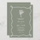 Tema de casamento com texto com moldura de dentro com desenho de linha de buquê sobre fundo Verde Sage.
